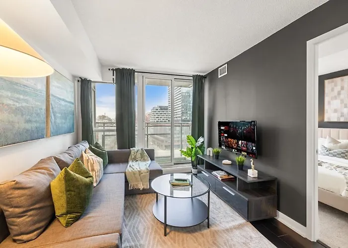 Die 1-Zimmer-Modern 1Br King Suite, Central Downtown Toronto befindet sich in der Nähe von verschiedenen Attraktionen der Stadt: Children's Discovery Centre liegt unter anderem rund 5 Minuten zu Fuß von hier entfernt. Das Apartment bietet Ausblicke auf die Stadt.